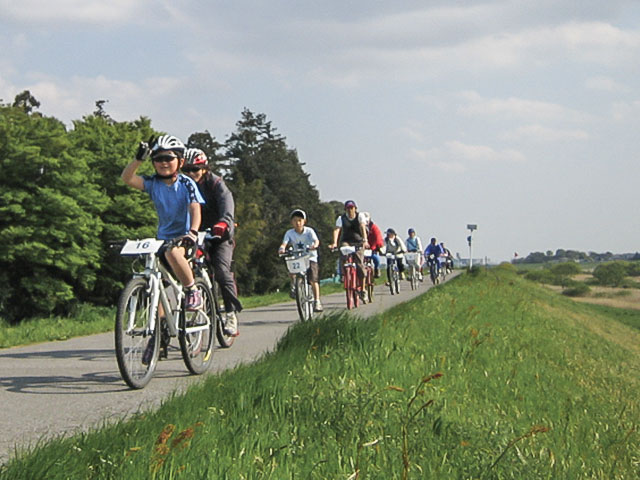 野田市は利根川、江戸川、利根運河と三方を河川で囲まれ、一周約60kmのサイクリングロードが整備さています。
