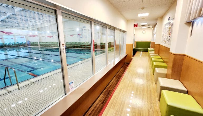 また、25m×6コースのプールを備えており、水泳のスキルアップや運動不足解消にも活用できます。保護者が安心して見守れるギャラリーがあるほか、プール室内を含む各所にカメラを設置しているため、自分の泳ぎをその場で確認しながらフォーム改善に取り組めるのも特長です。